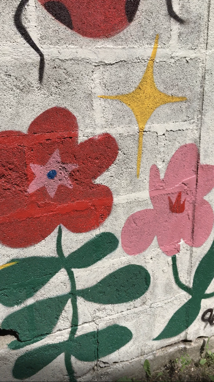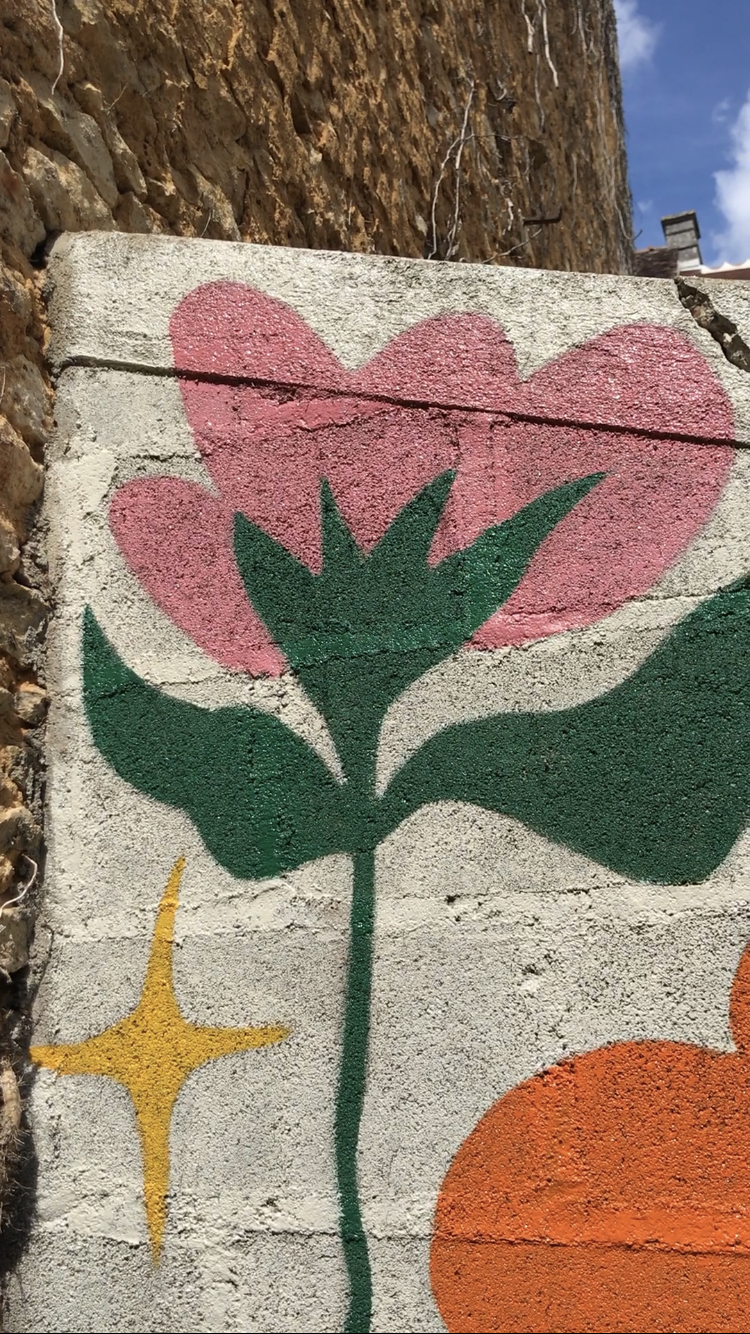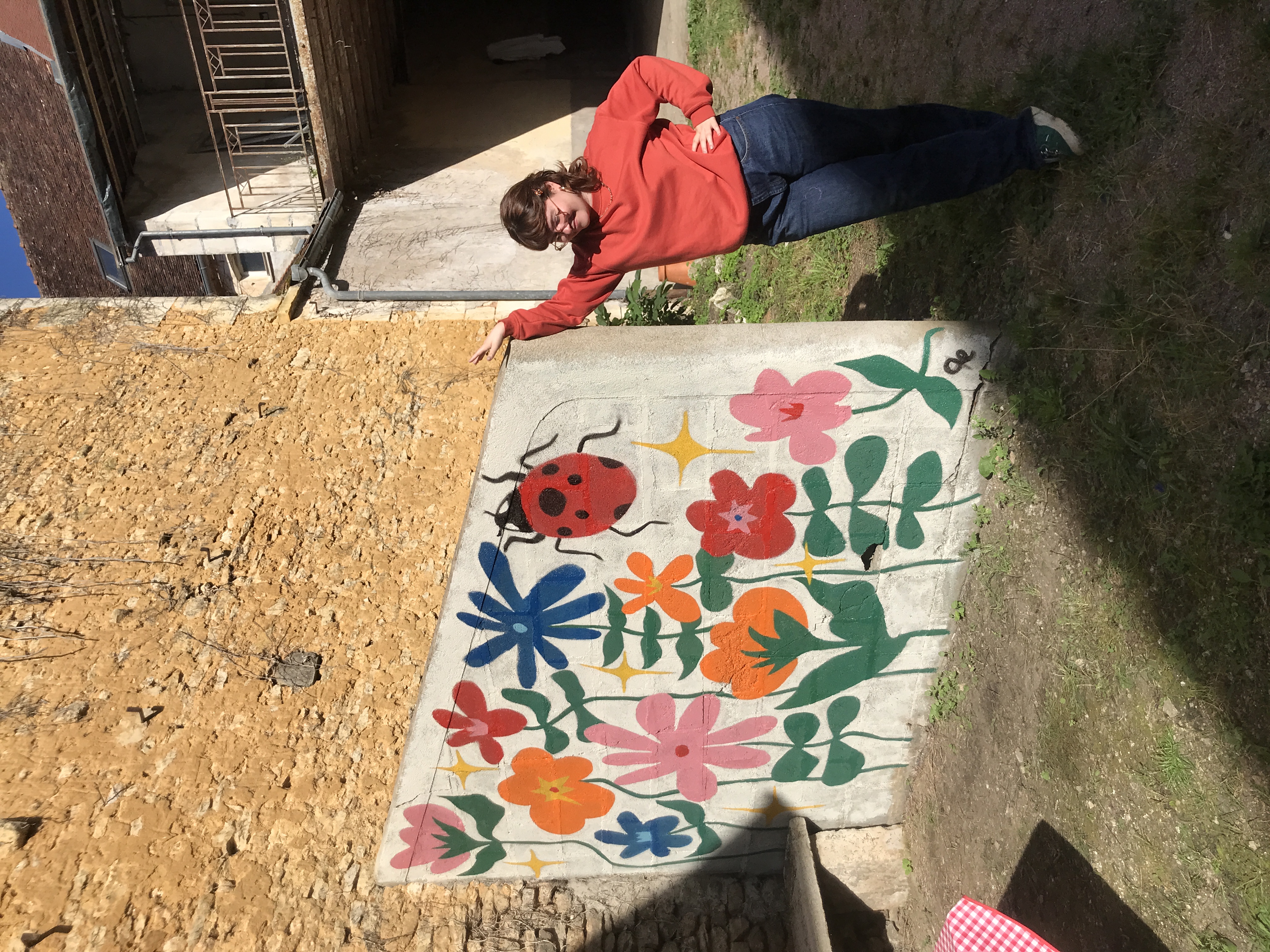 Fresque murale florale et colorée pour égailler une maison de vacances en Bourgogne. Réalisée en 4 jours, entre le croquis, le séchage, les couches et les finitions.
